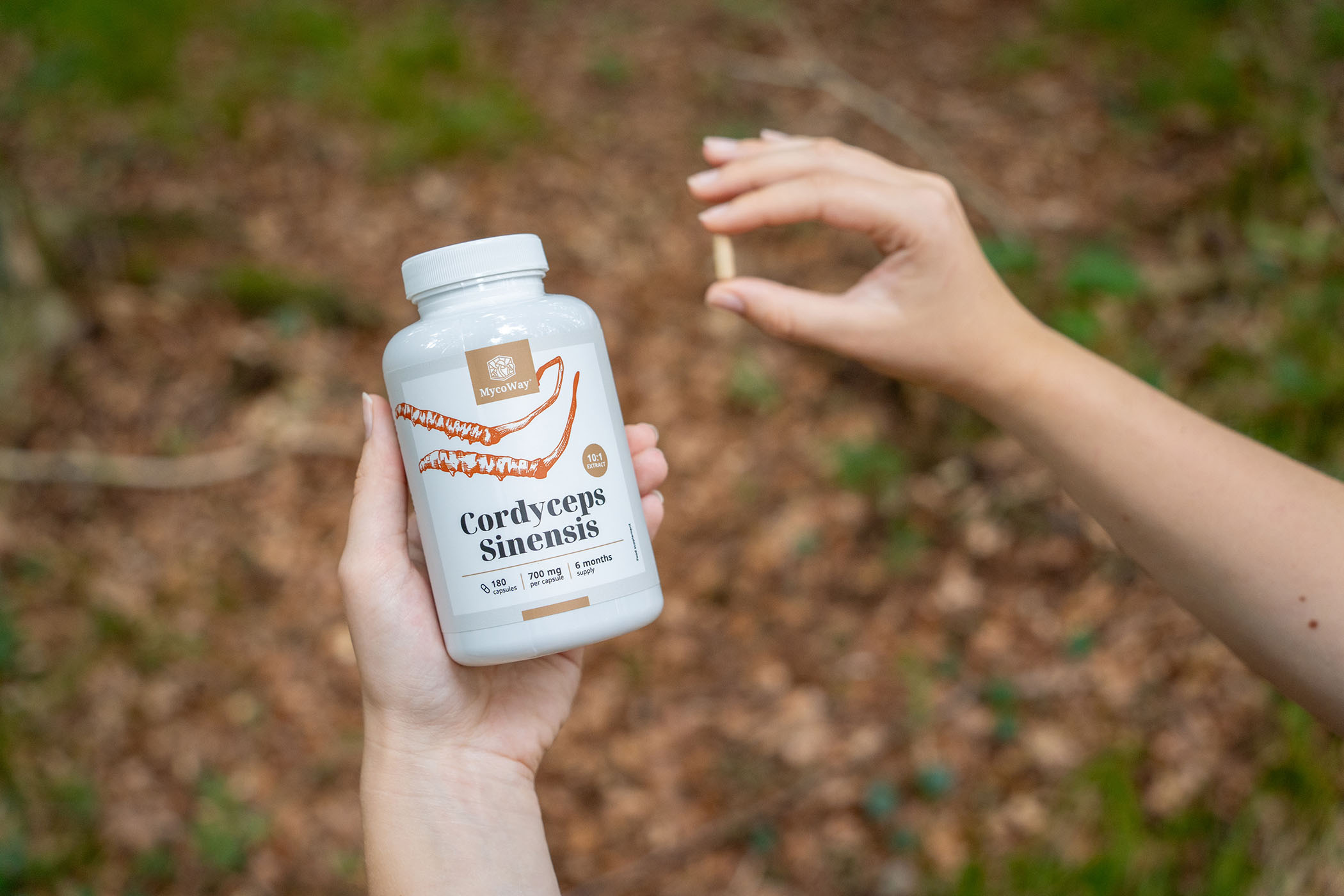 “MycoWay kapsule Cordyceps sinensis so popolna izbira za podporo mojemu aktivnemu vsakdanu.”